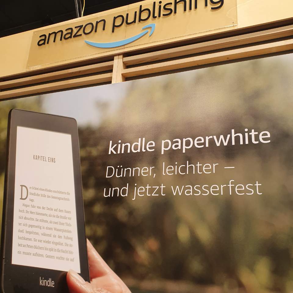 들어가자마자 아마존 킨들 퍼블리싱(Amazon Publishing)이 보이네요. 킨들 퍼블리싱으로 출판된 종이책이 전시되어 있고, 역시 아마존의 전자책 리더기 킨들도 전시되어 있습니다.