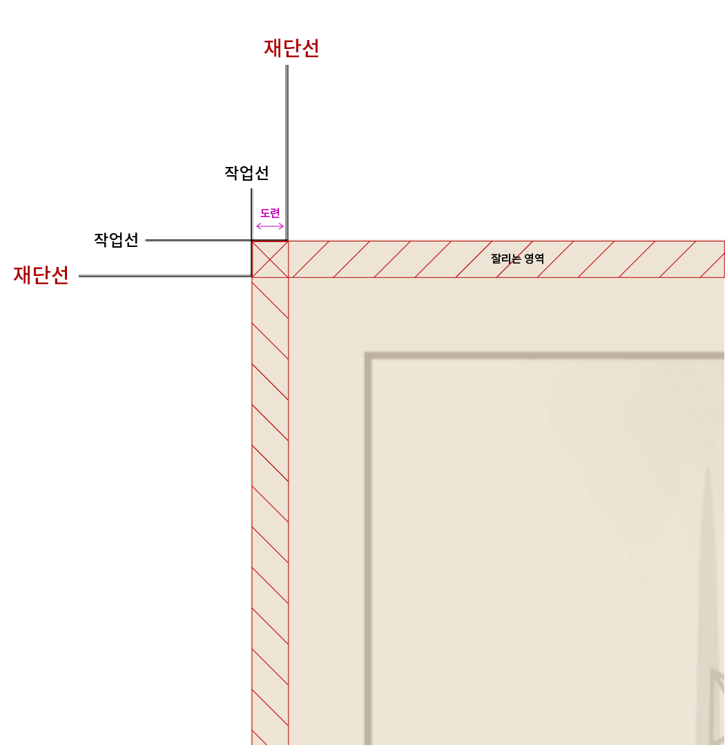 재단 시 오차가 생겨도 흰색선이 나오지 않게 하기 위함이죠!