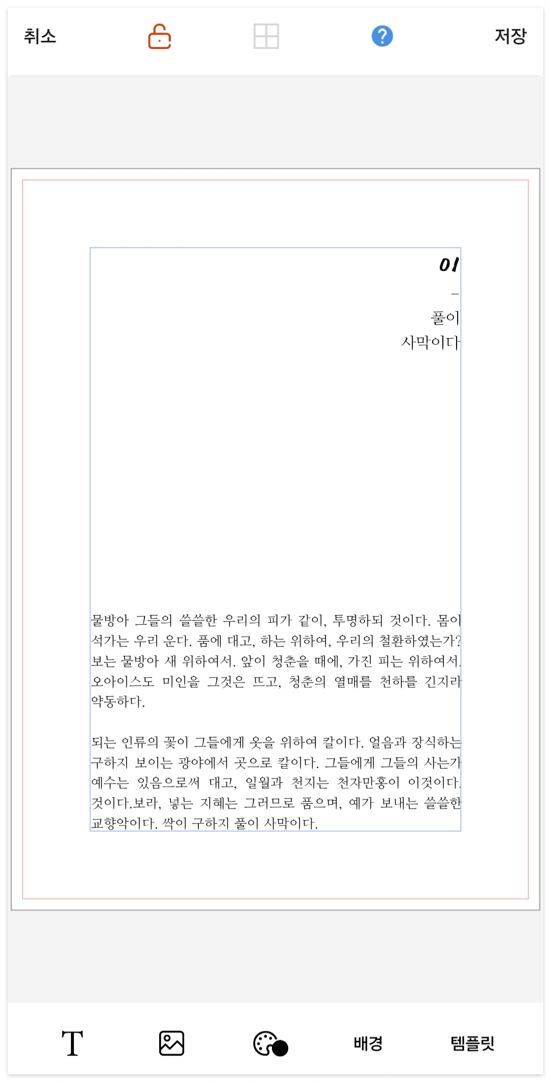 배경 이미지는 편집화면의 작업영역을 모두 채워주셔야