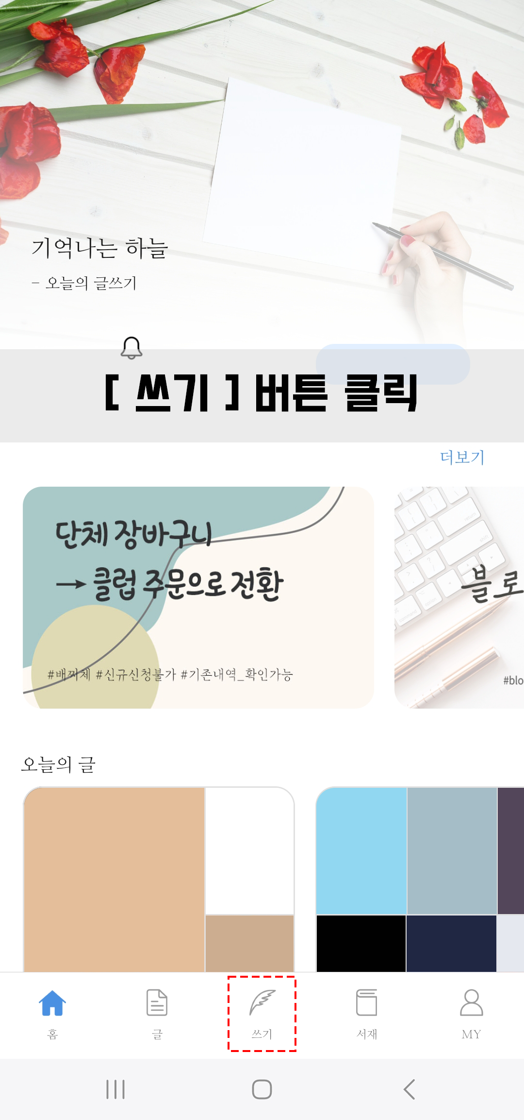 [ 쓰기 ] 버튼을 눌러 편집화면으로 이동합니다.