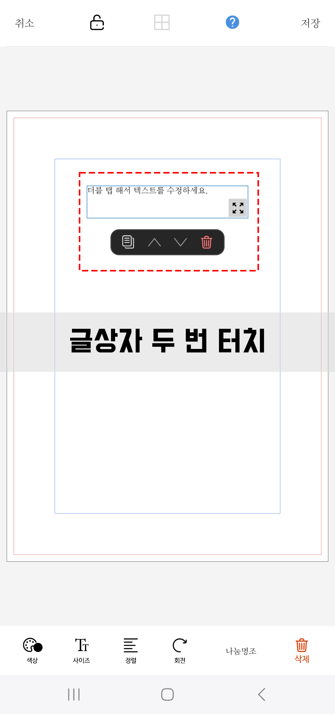 생성된 글상자를 두번 터치해 텍스트 입력 화면으로 넘어갑니다.