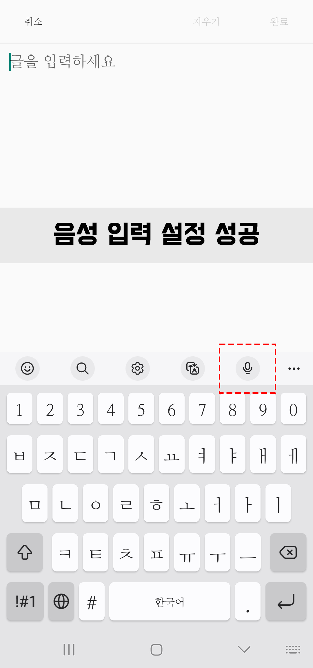 음성 입력 설정 성공!