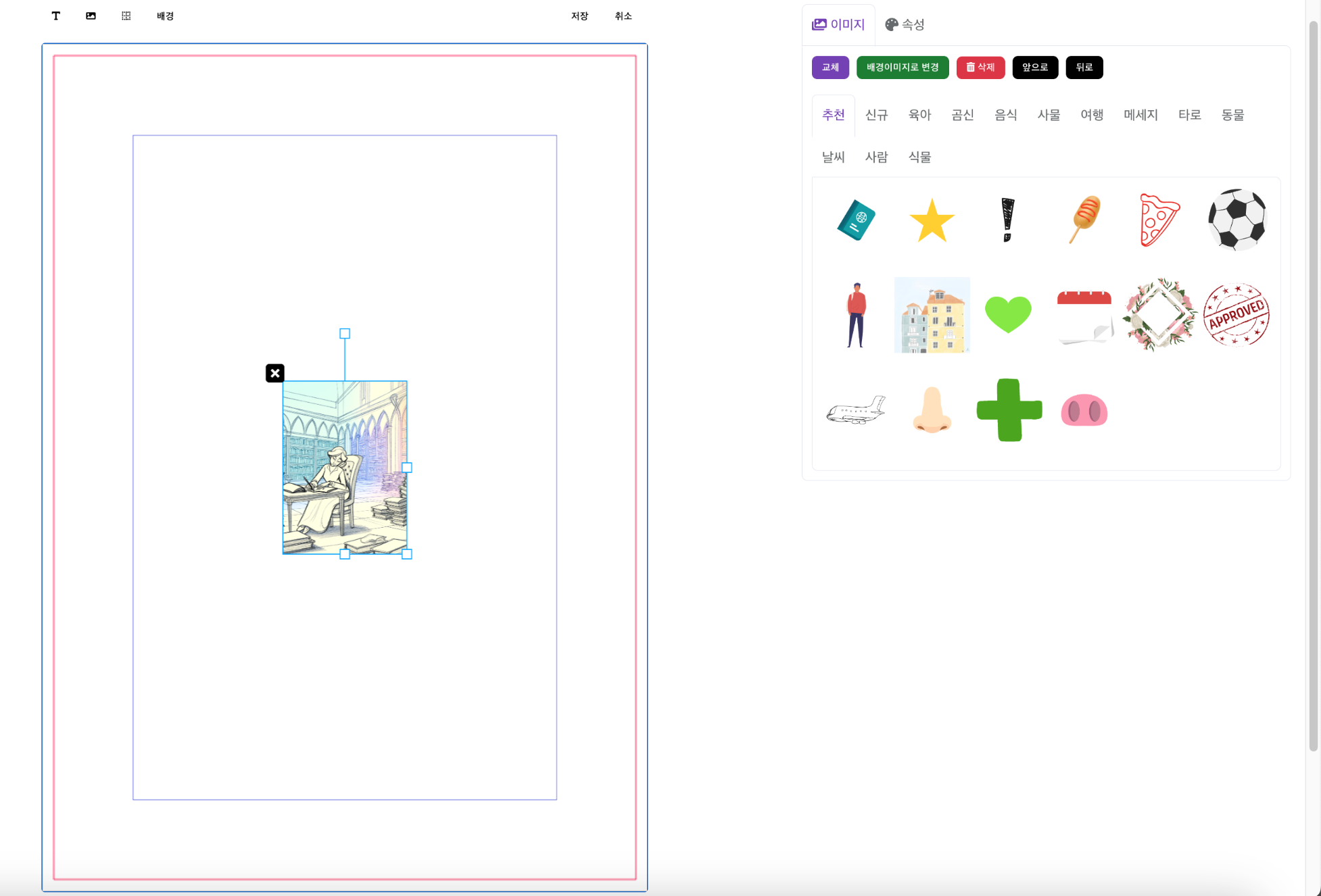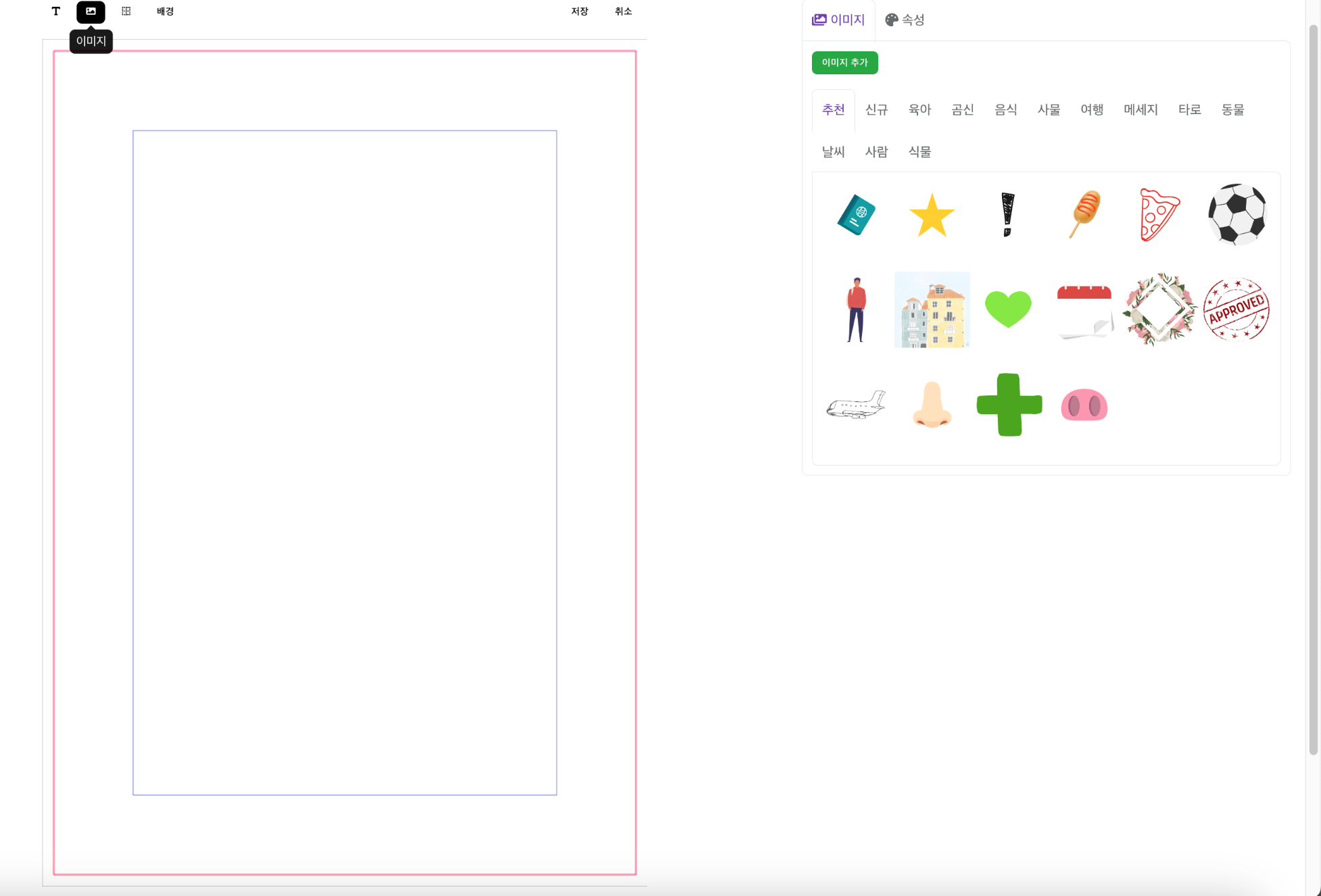 [배경]버튼을 눌러 이미지 추가해주시면 됩니다.