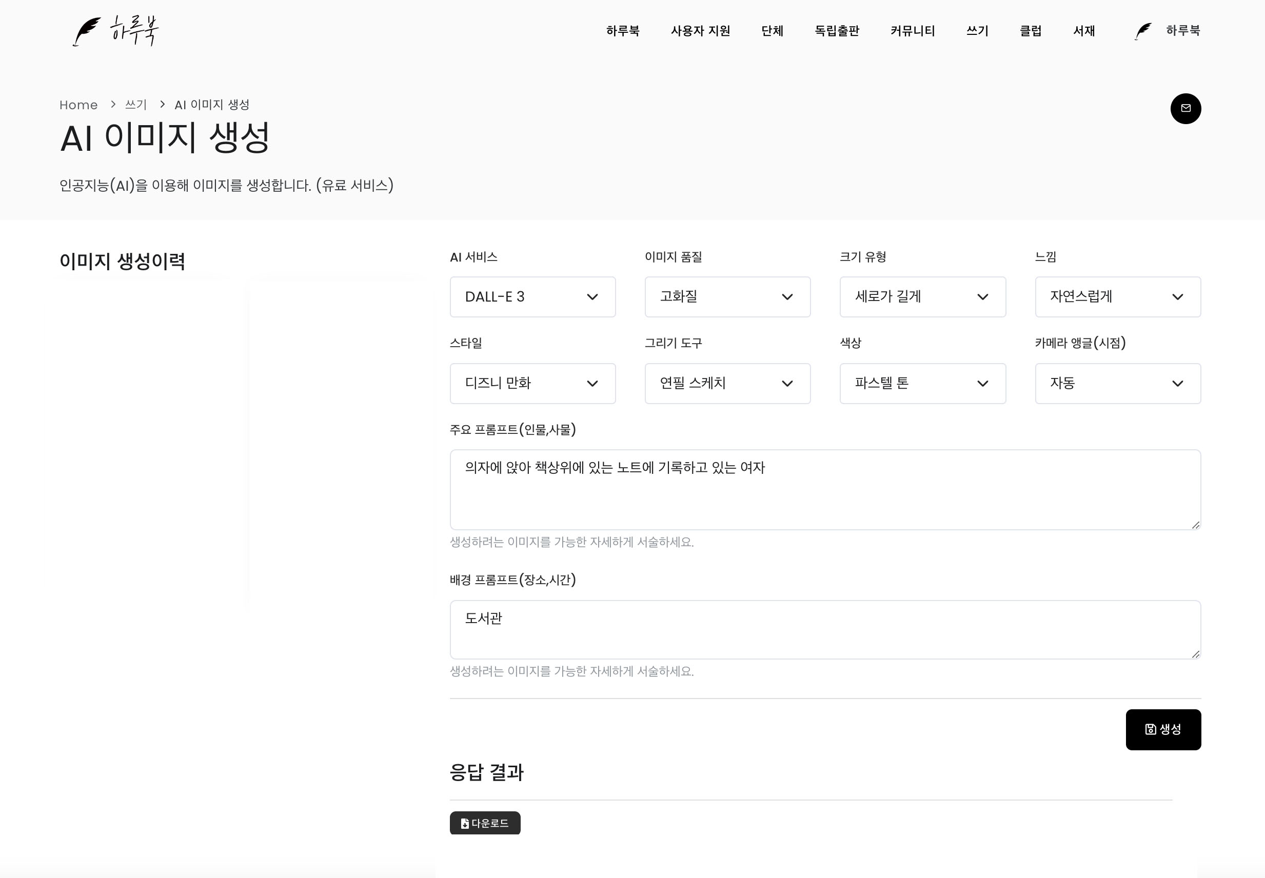 그런데 하루북 AI 이미지 생성은