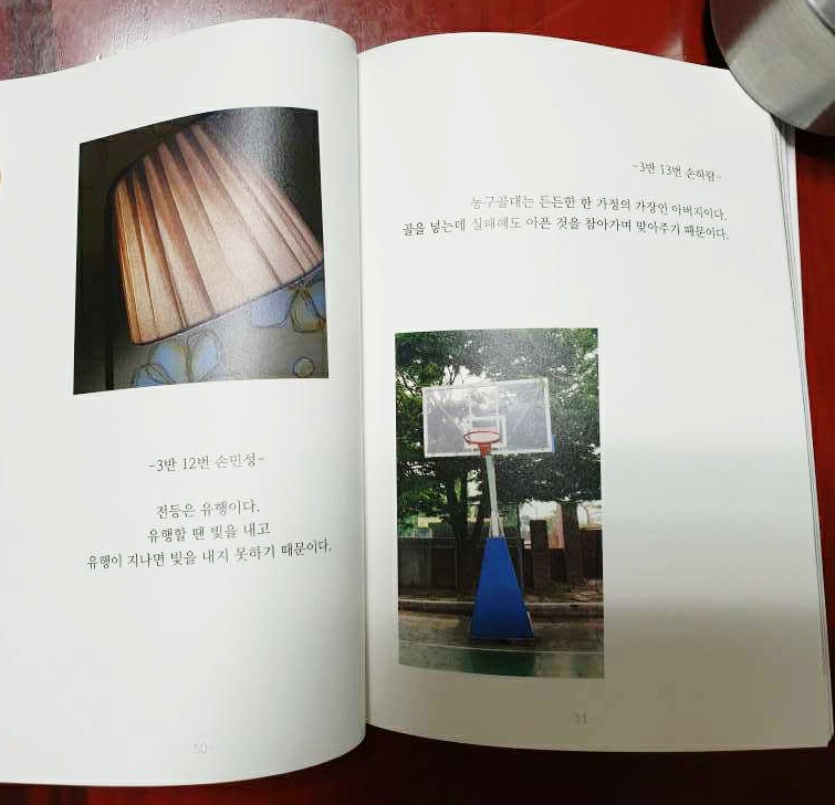 처음에는 학생들이 글쓰기가 잘 안 되니까, 어떻게 하면 더 잘 쓸 수 있게 만들 수 있을까 고민하다가 주변에서 볼 수 있는 것을 관찰해서 짧은 글을 쓰도록 했어요. 그래서 아이들이 자기가 직접 사진을 찍고, 거기에 글을 쓴 거예요.