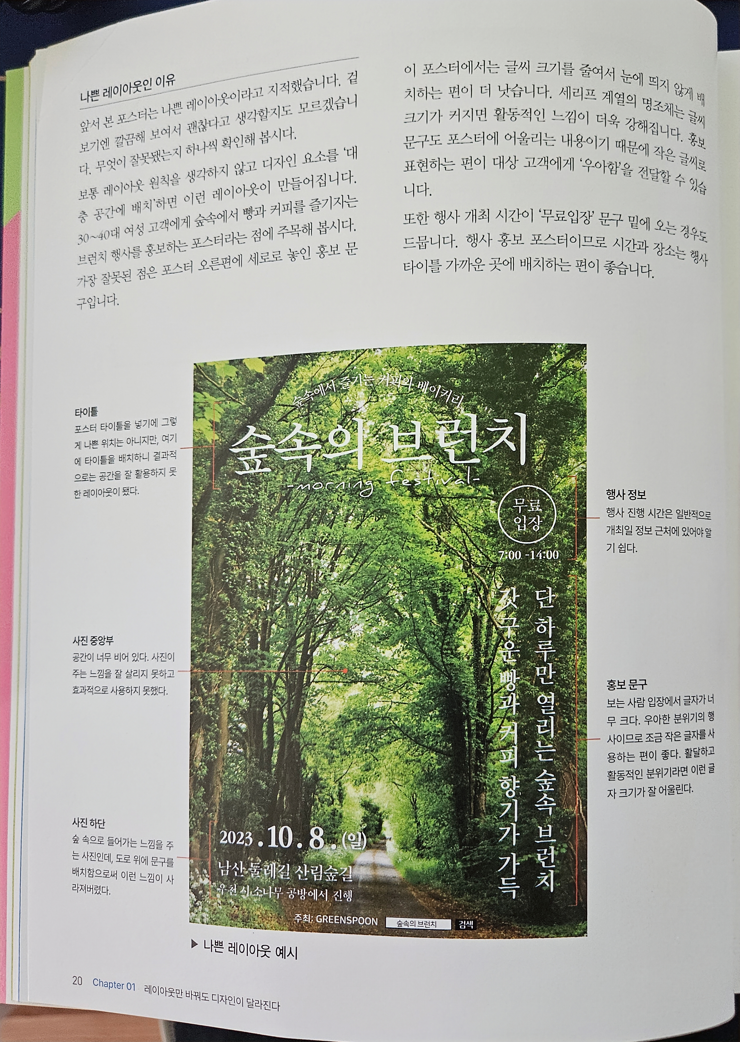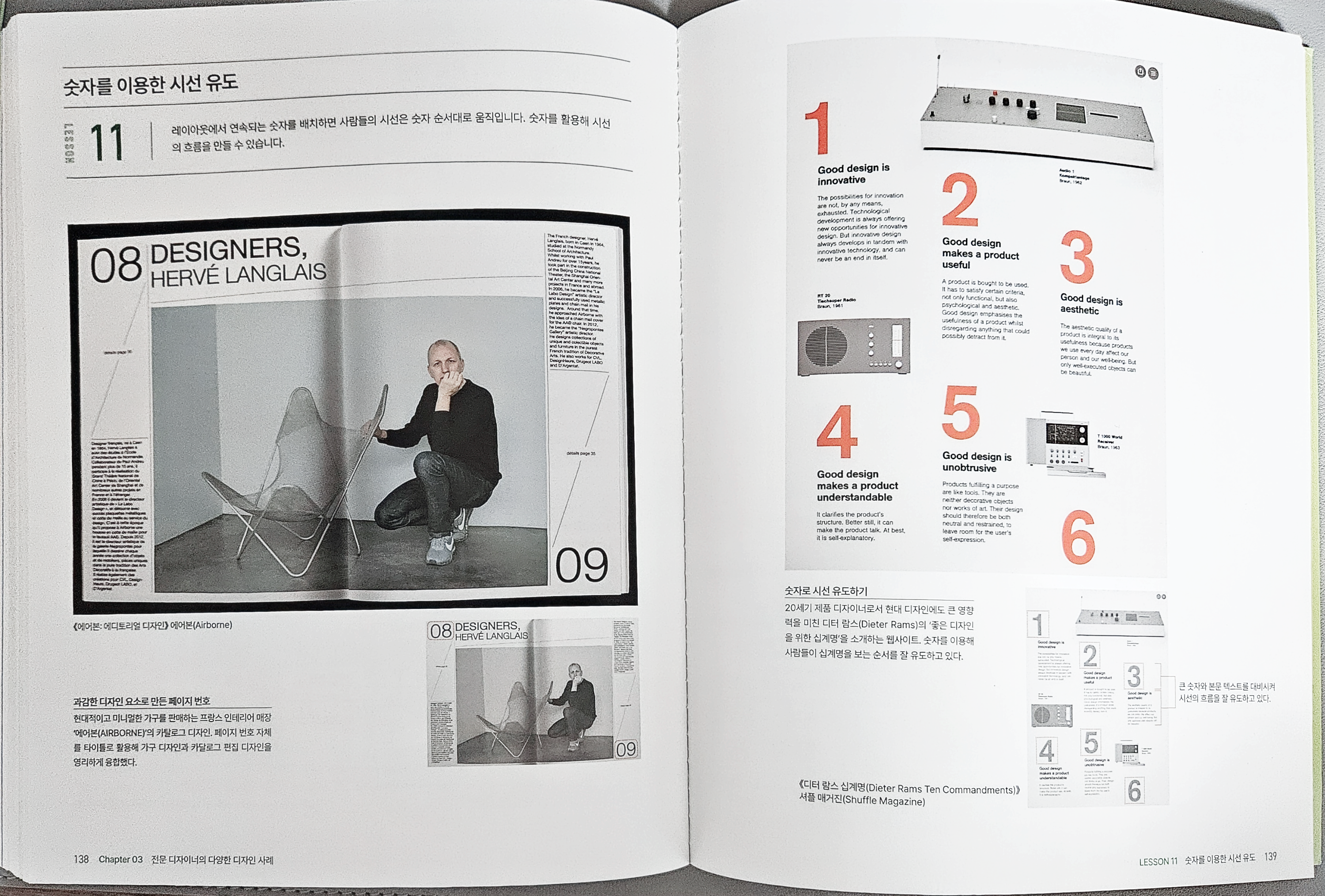 그 외 정말 많은 기본 원칙이 예시와 함께 친절하게 설명이 되어 있어 디자인의 기본을 배우기 정말 좋은 책입니다.