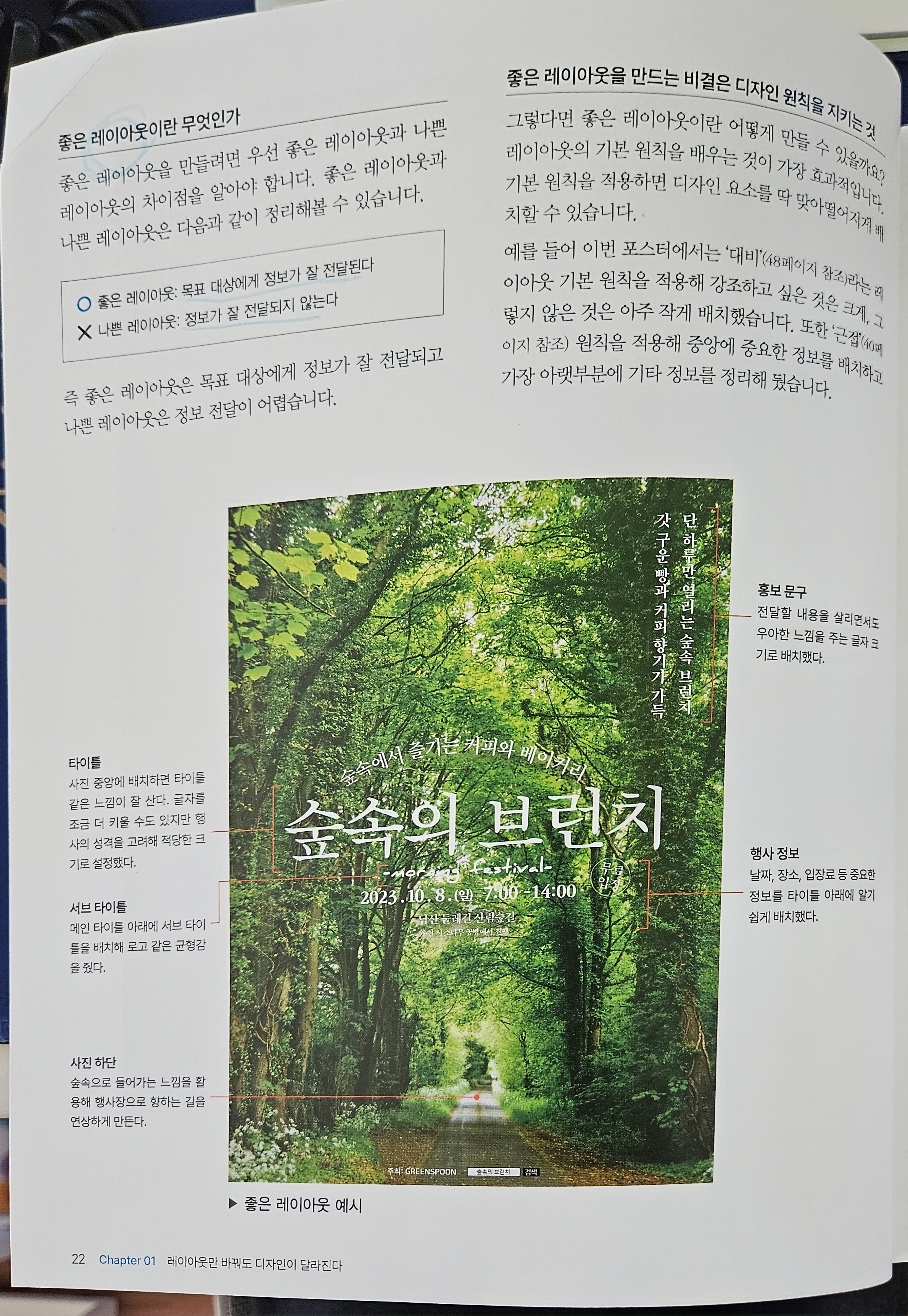 그 외 정말 많은 기본 원칙이 예시와 함께 친절하게 설명이 되어 있어 디자인의 기본을 배우기 정말 좋은 책입니다.