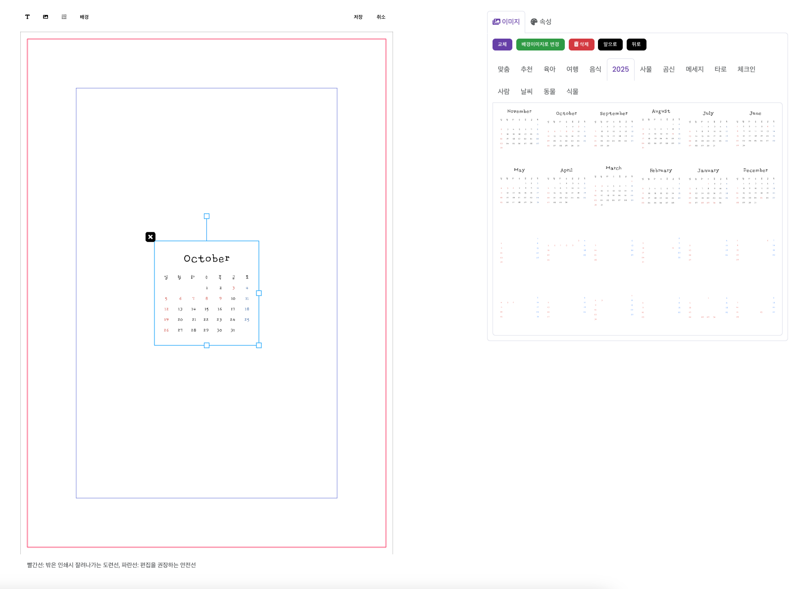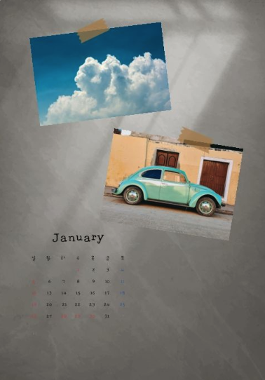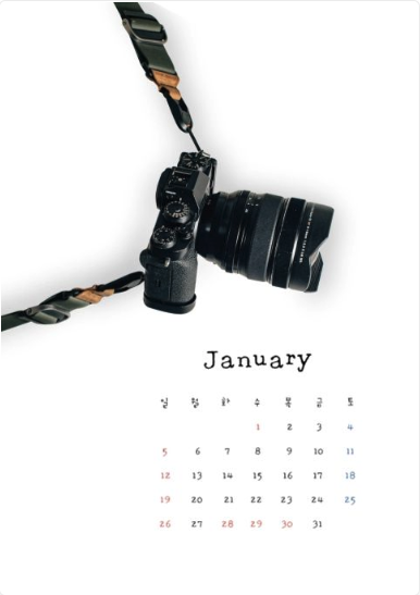 아래 사진 처럼 다양한 이미지와 요소들을 활용하여 나만의 달력을 만들 수 있는 것이 장점입니다!