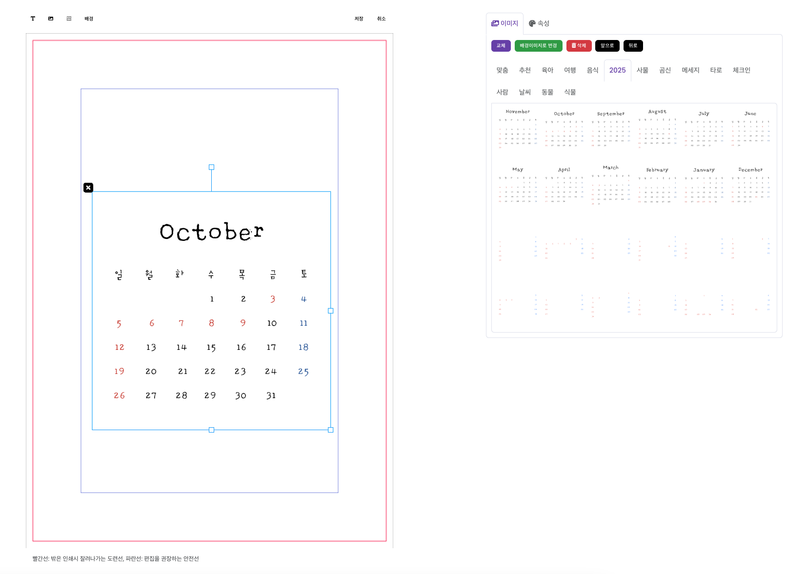 편집화면 상단 이미지 아이콘 > 2025년에 들어가면 작은 달력 이미지를 볼 수 있는데요,