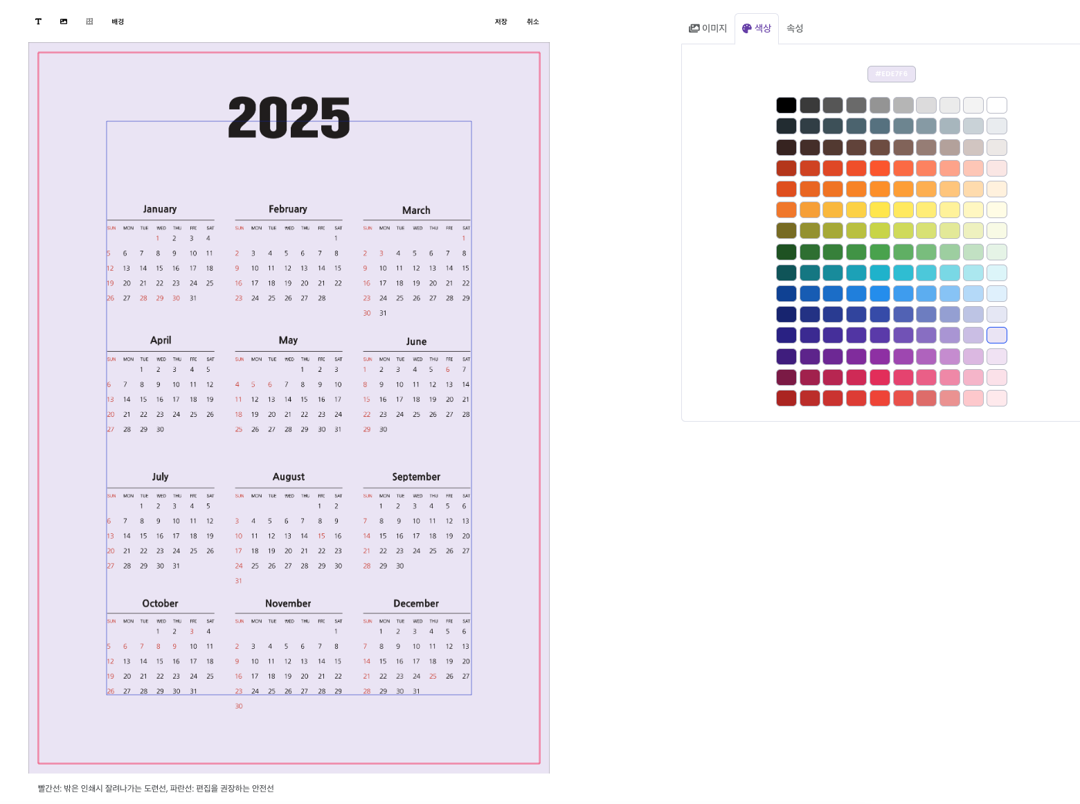 이미지 달력도 투명 배경색이기 때문에 배경색을 변경할 수 있습니다!