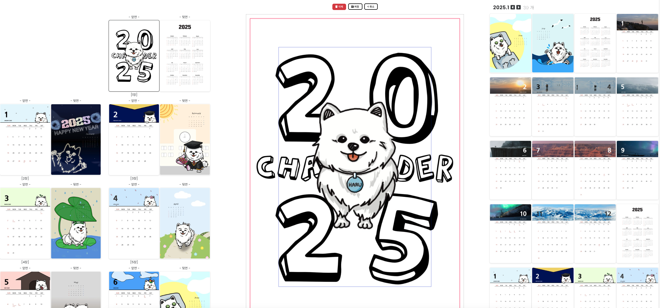달력의 앞면은 이미지 달력 템플릿이 적용된 페이지가 자동으로 생성되어 자리를 차지하고 있습니다.ㅎ