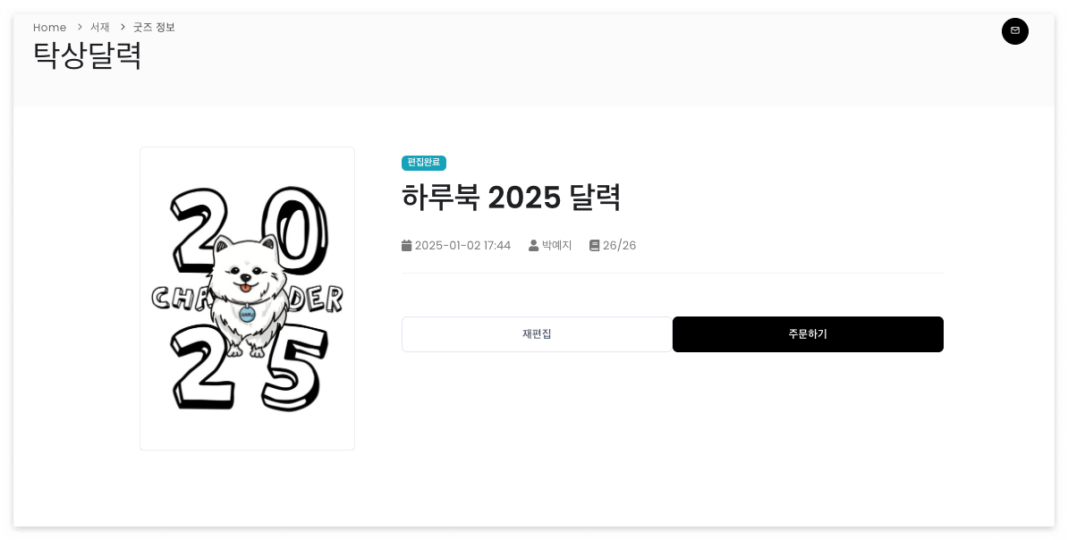편집완료가 되었으니 이제 주문을 할 수 있습니다.
