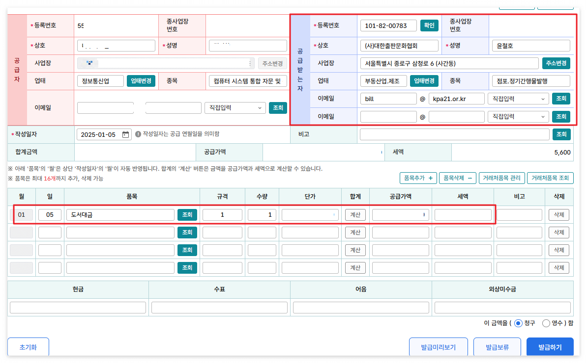 계산서는 판매용 자료에 경우에만 해당되기에 작성 예시를 통해 계산서 발행이 가능합니다.