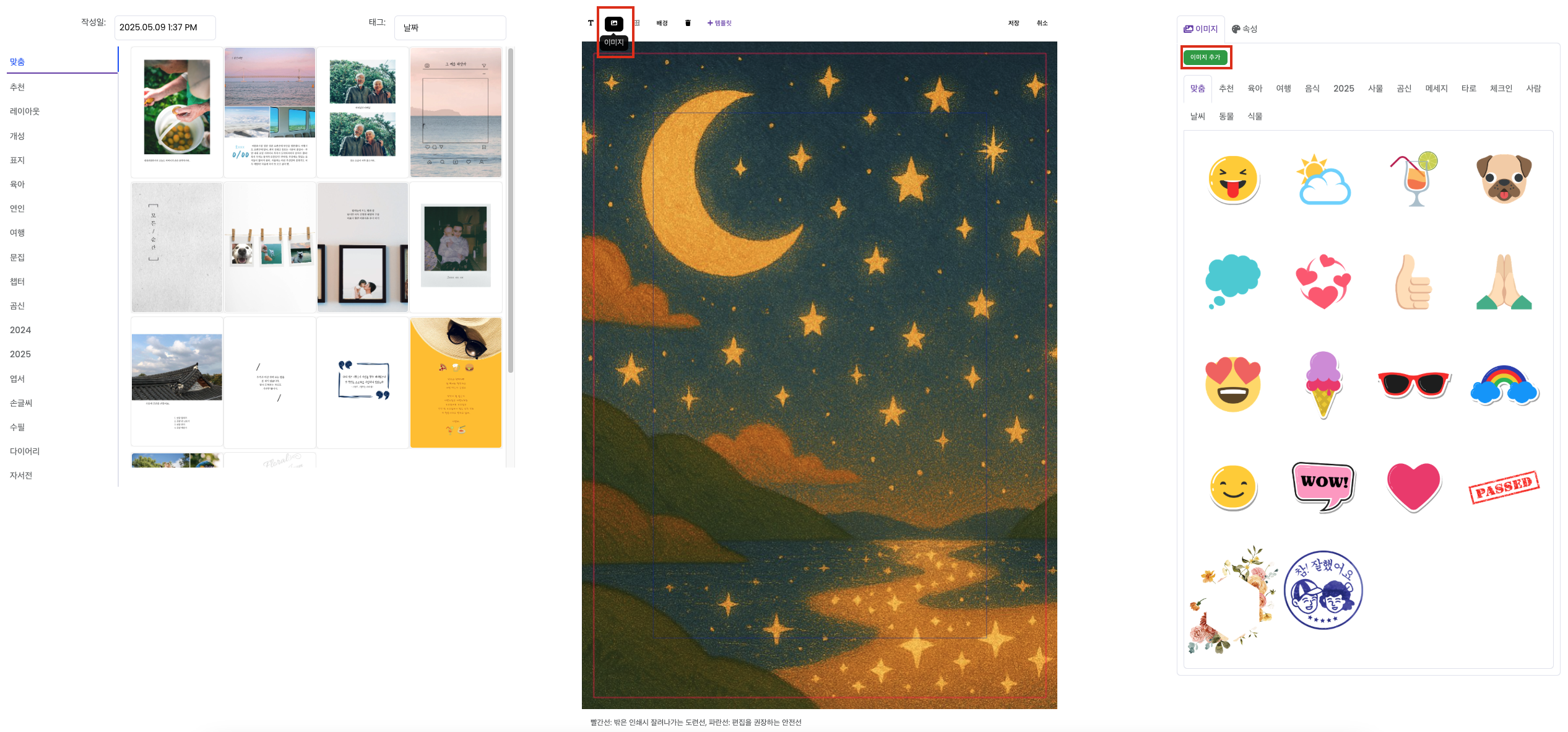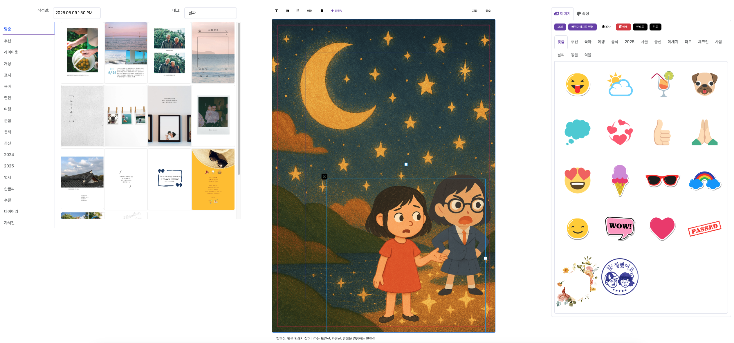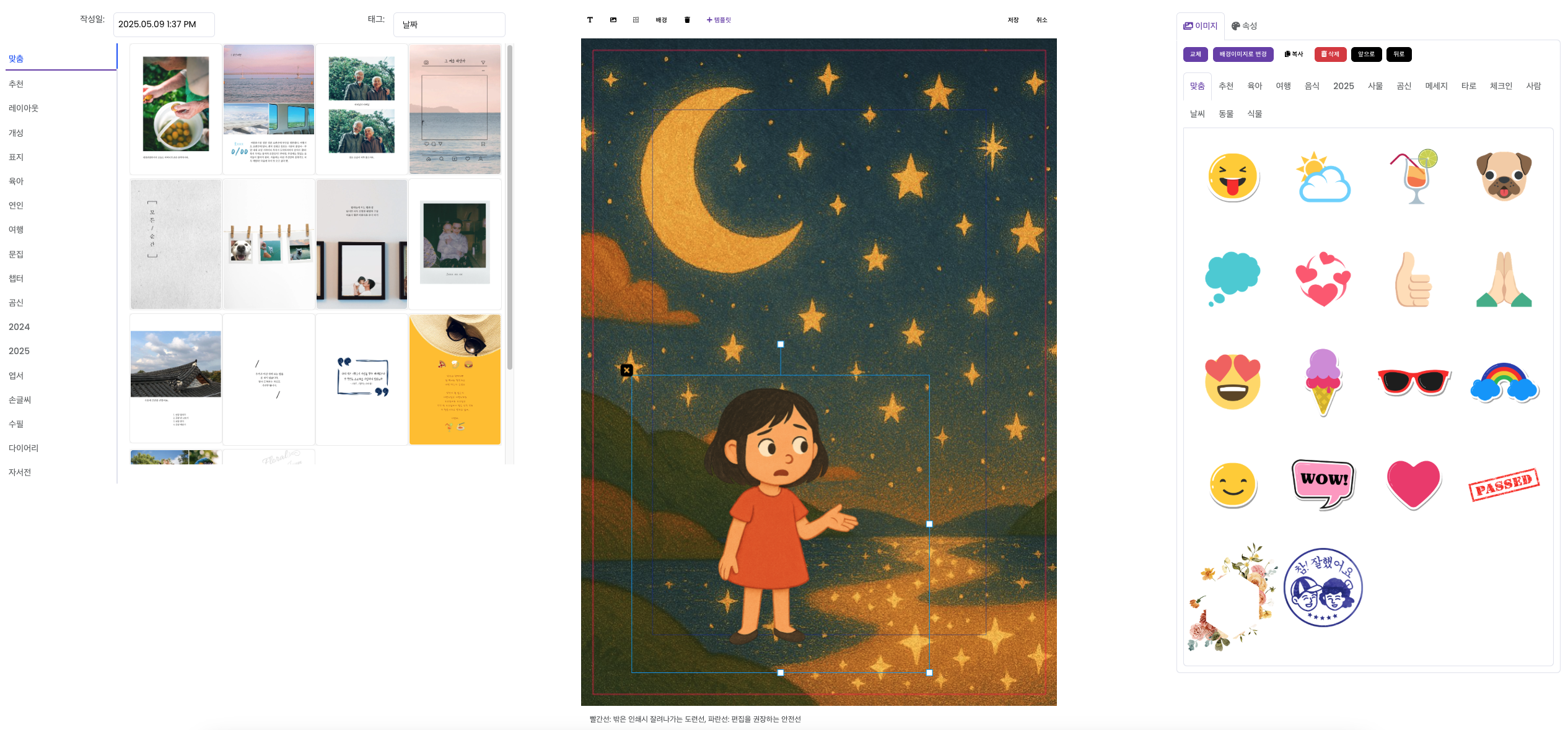하루북 내에서 글을 작성하면 이미지 자체에 글이 있는 것보다 선명한 인쇄물을 얻을 수 있습니다.