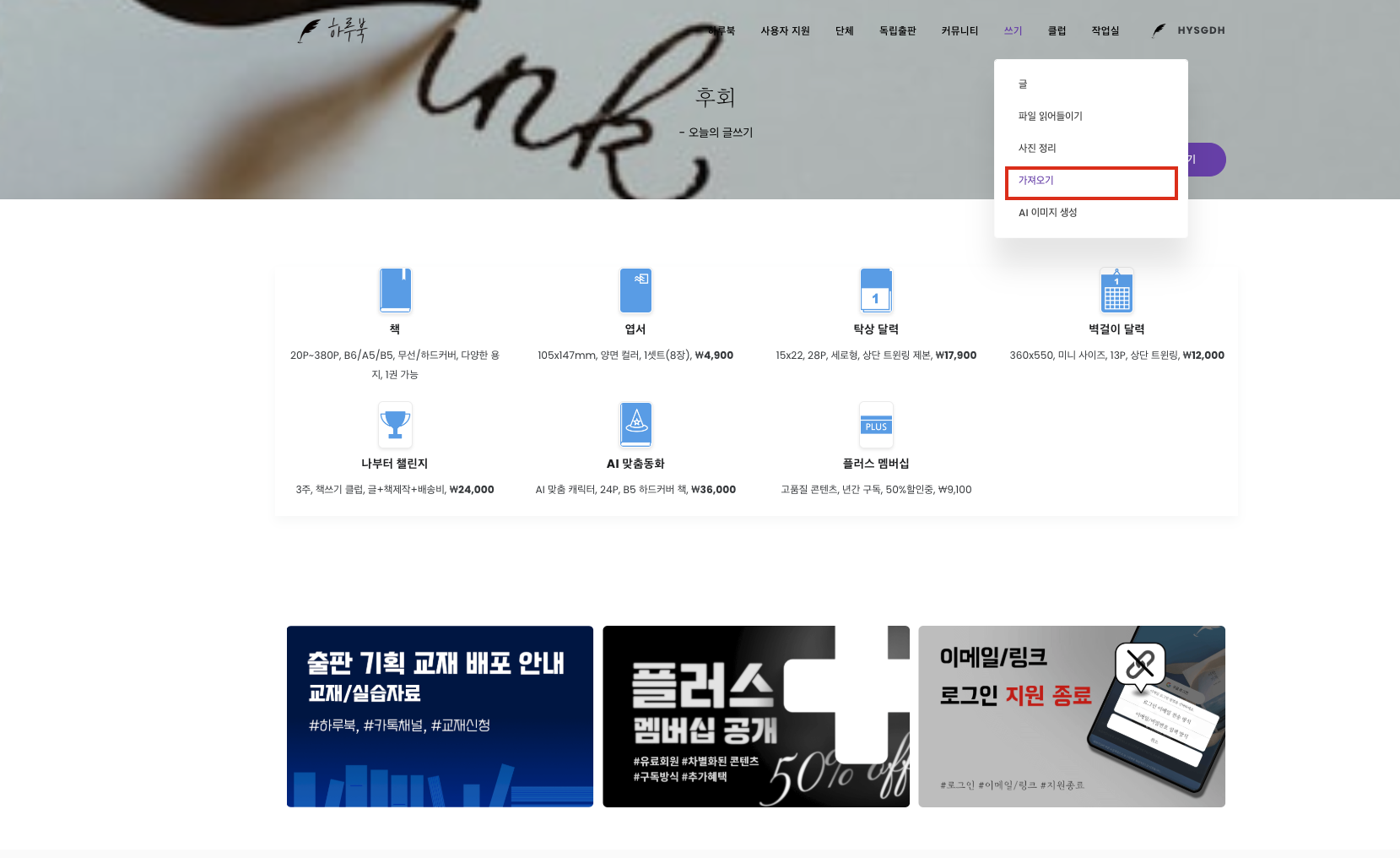 쓰기 > 가져오기를 눌러줍니다.
