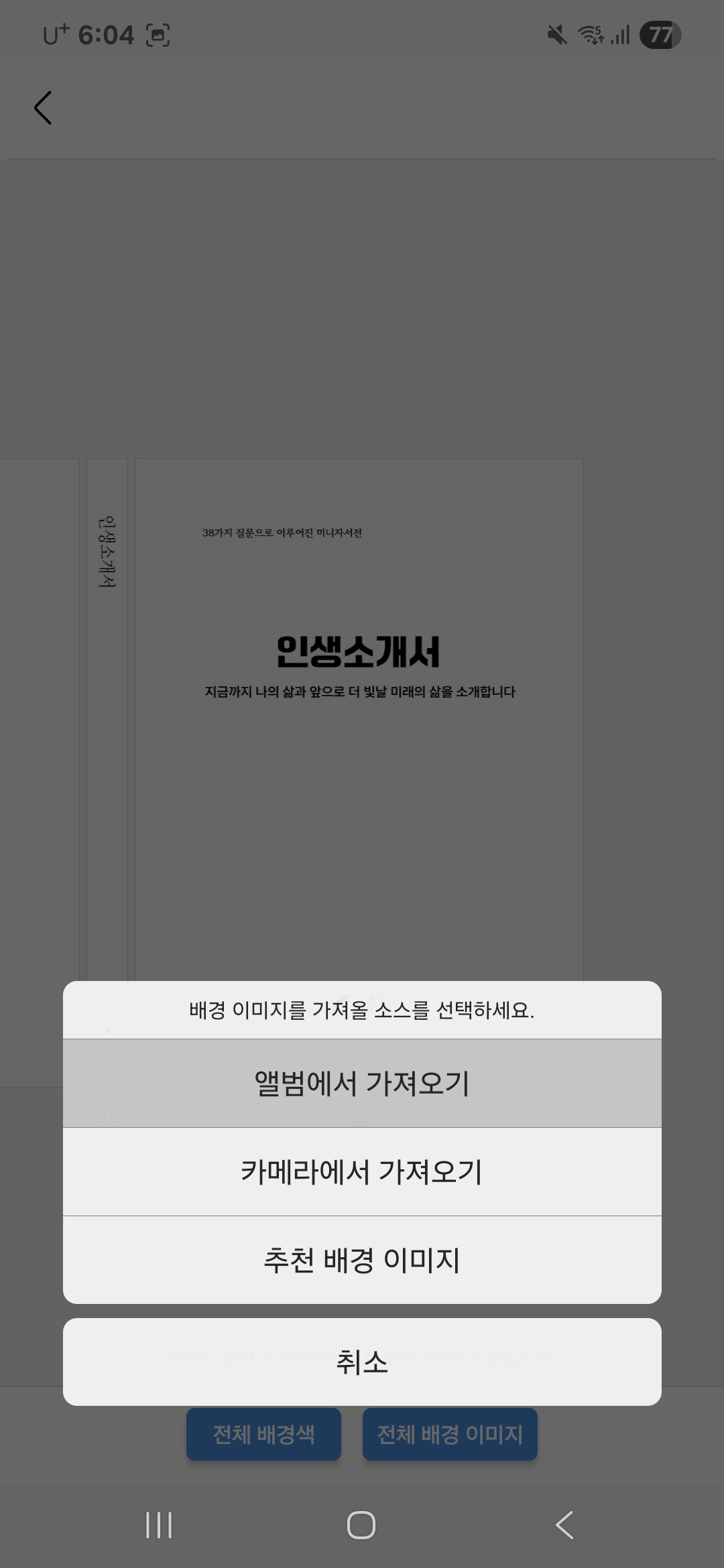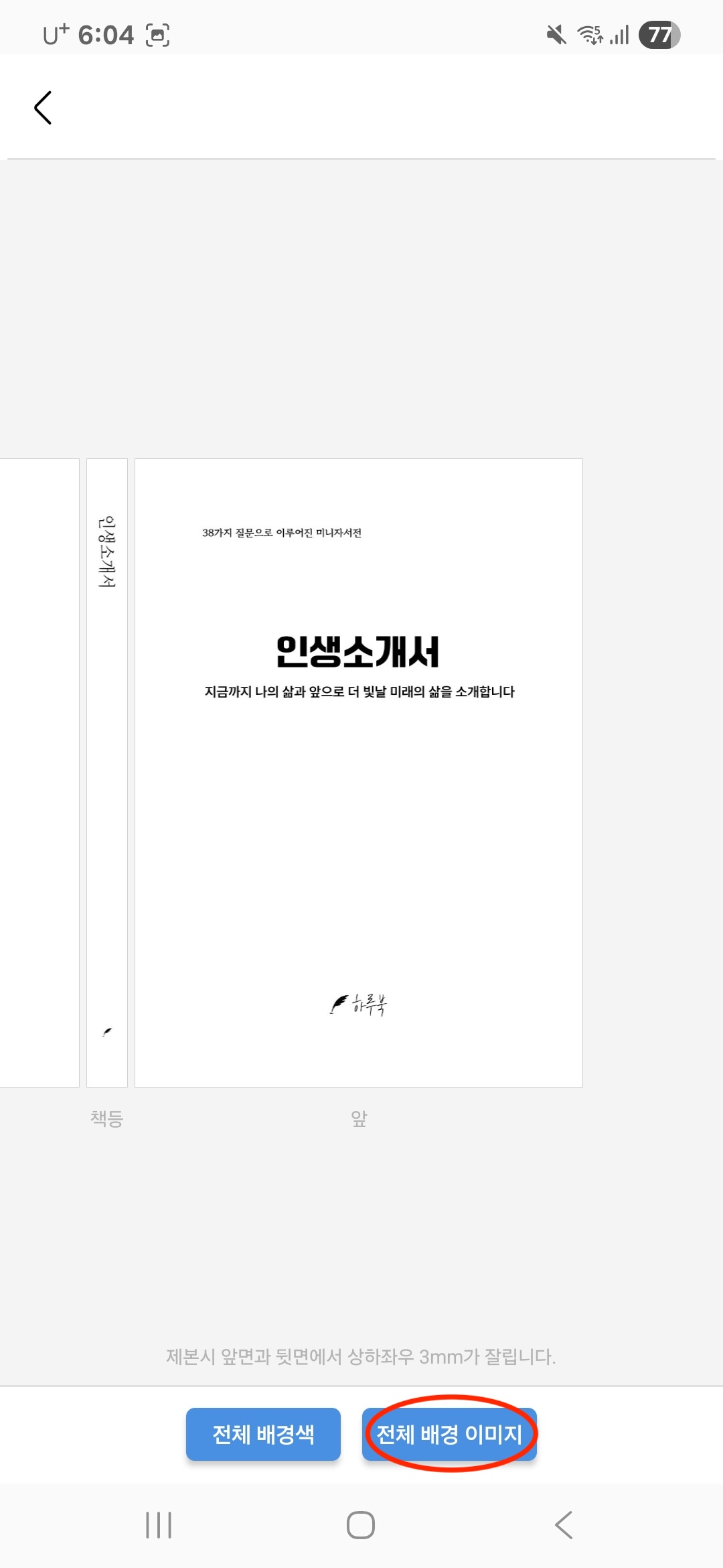 웹사이트에서 편집하시는 분은 표지 전체 배경을 넣으려면 표지 편집에 들어가서 [표지 편집]버튼을 한 번 더 눌러주시면 됩니다!