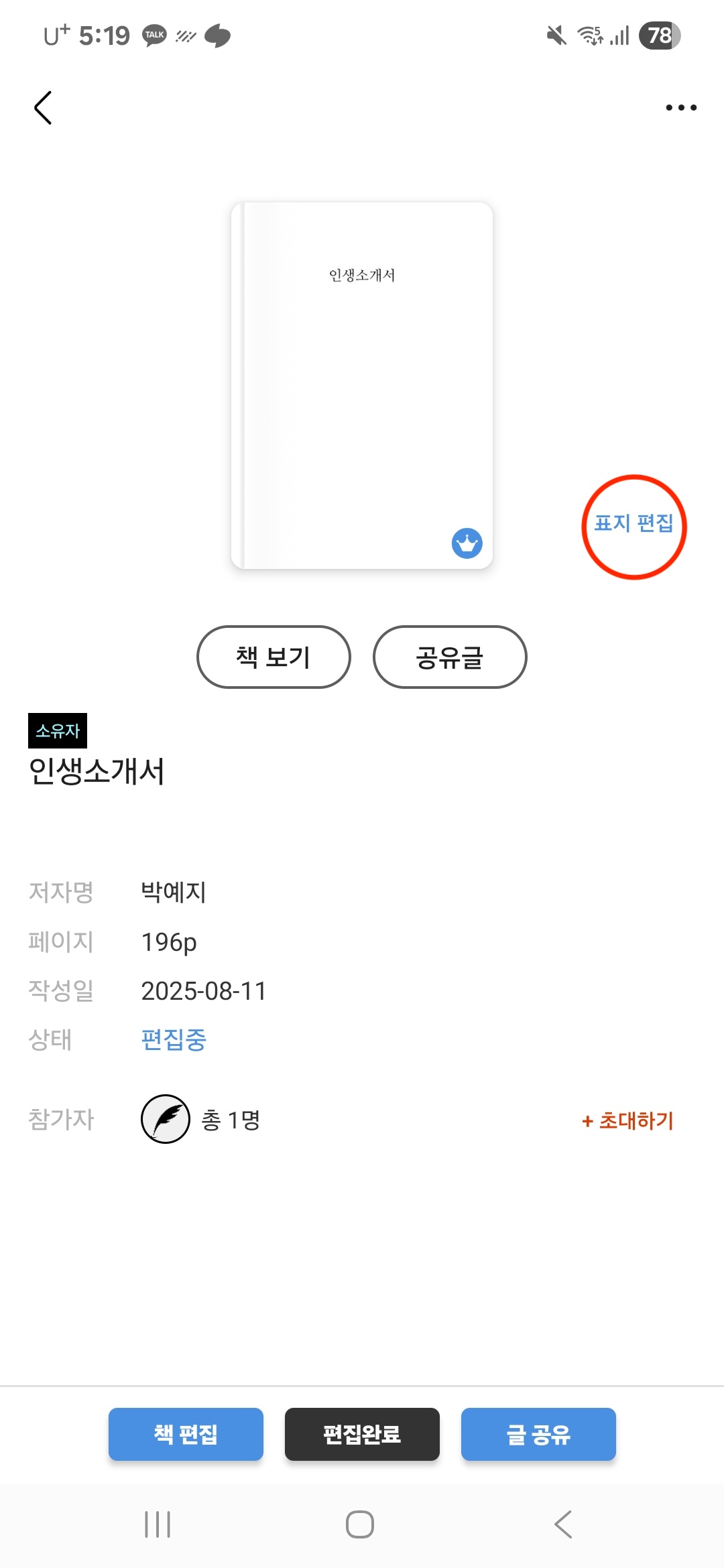 작업실에 책에 들어가면 [표지 편집]이라고 있습니다.