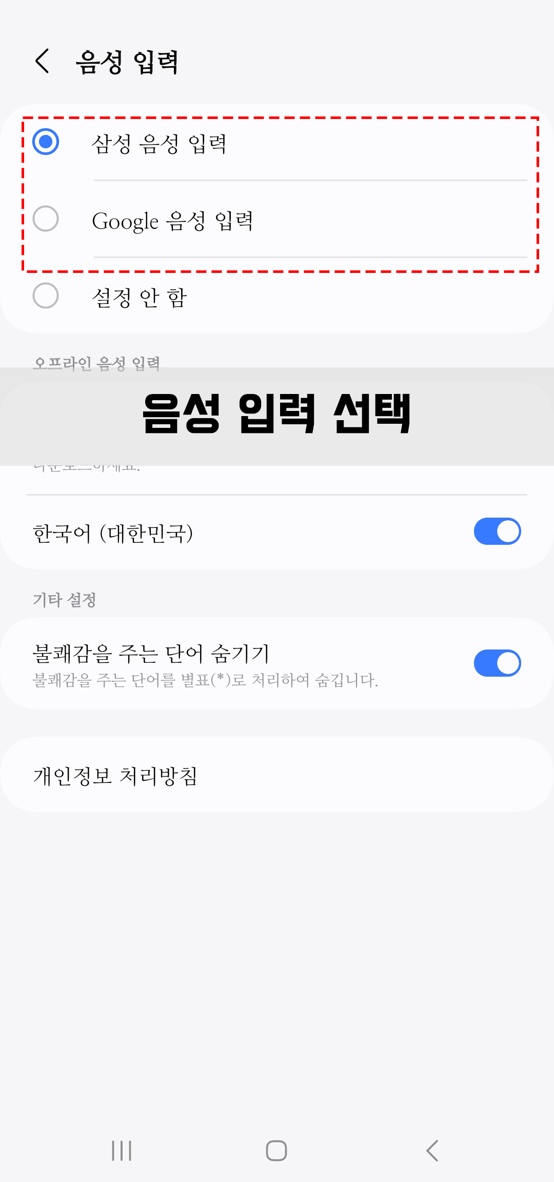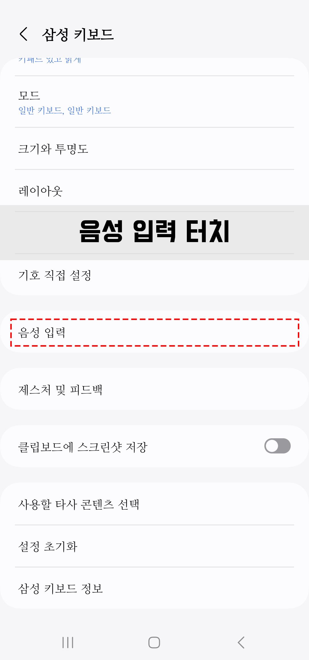 각 휴대폰의 ' 키보드 설정 '에 들어가 ' 음성 입력 '을 찾아줍니다.