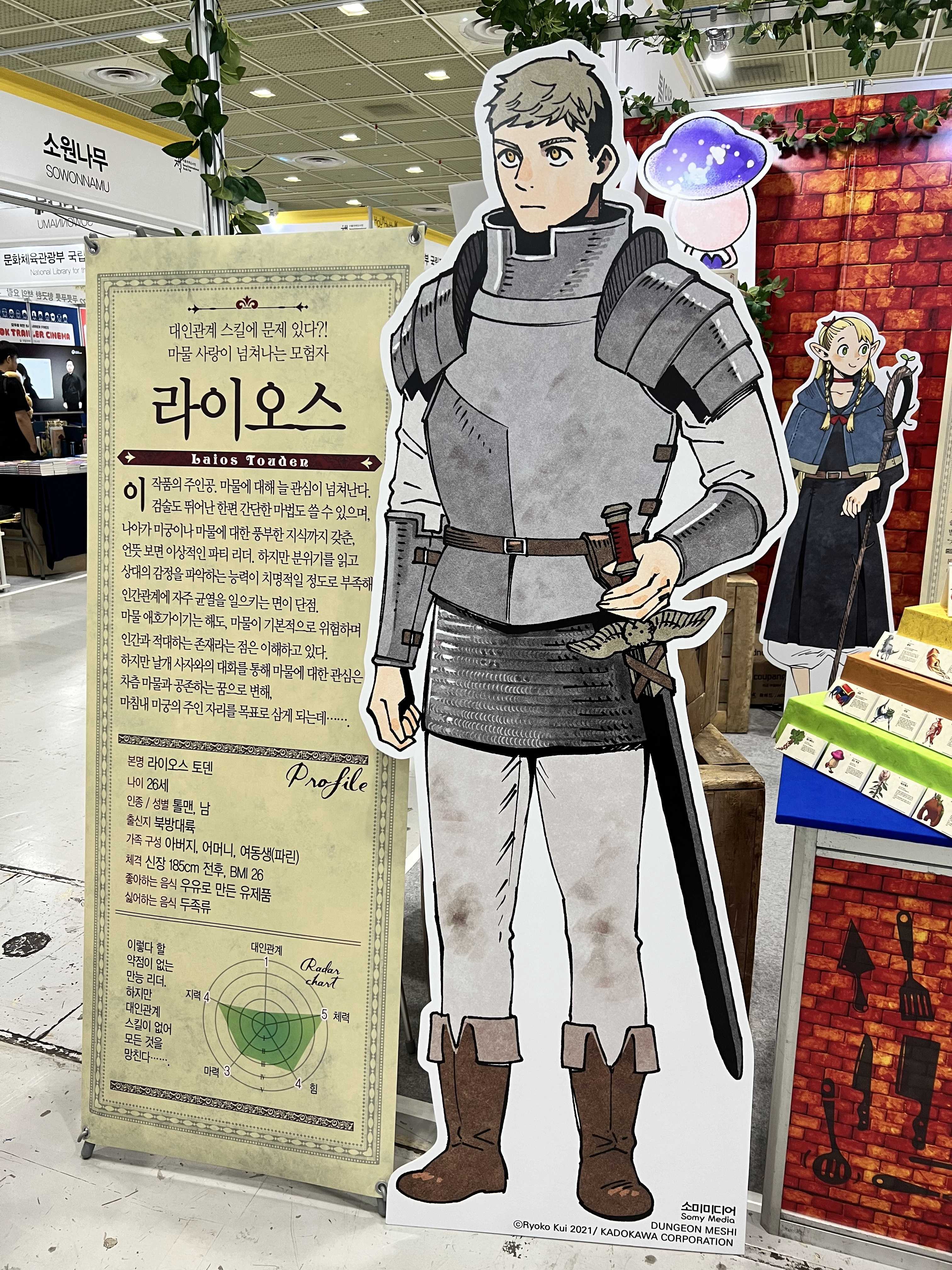 그 중 한 곳인 소미미디어의 던전밥 등신대는 캐릭터가 마치 제 눈 앞에 있는 듯 해 구경하는 내내 손을 모아 구경했던 거 같습니다.