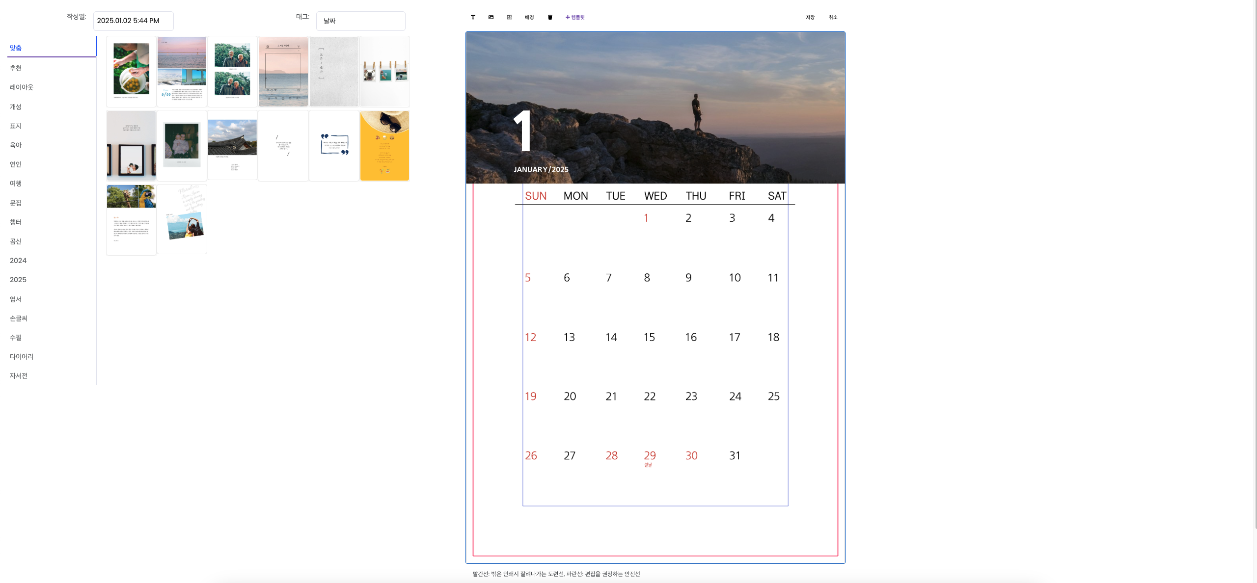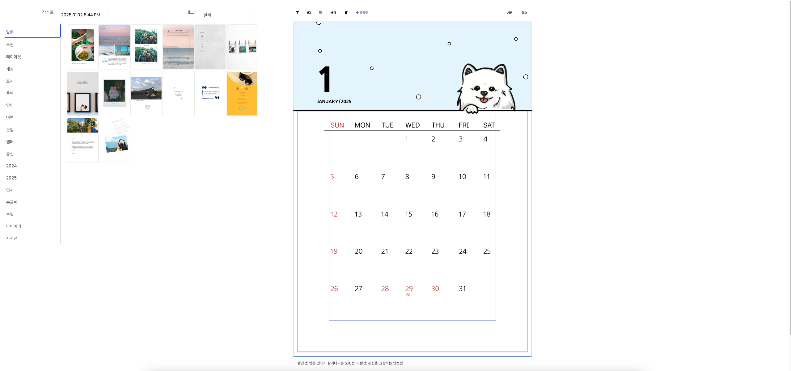 달력을 제작할 준비가 완성됩니다.