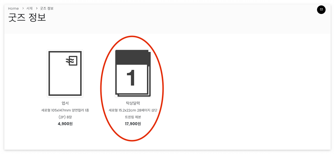 엽서와 탁상달력 중에서 탁상달력을 선택해주세요!