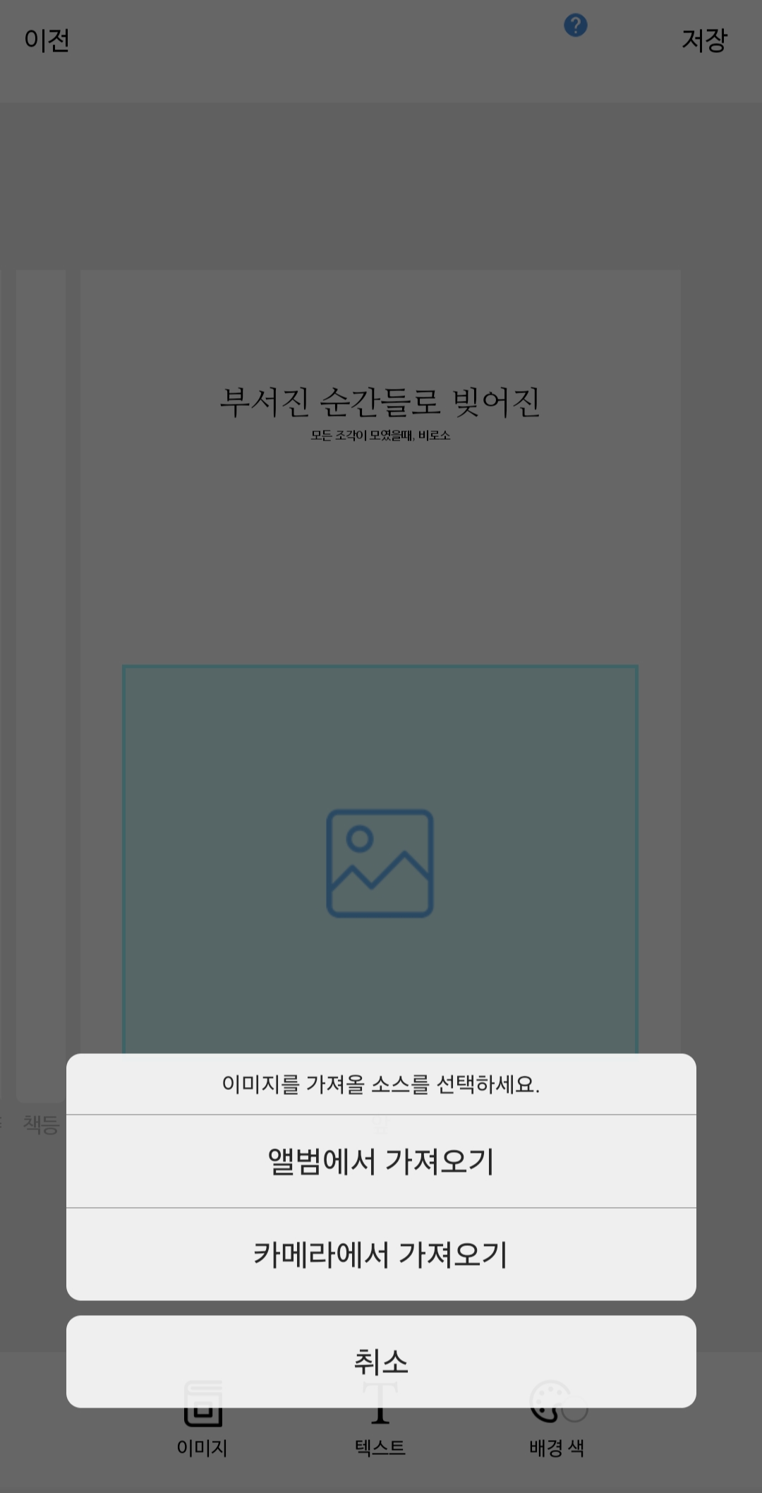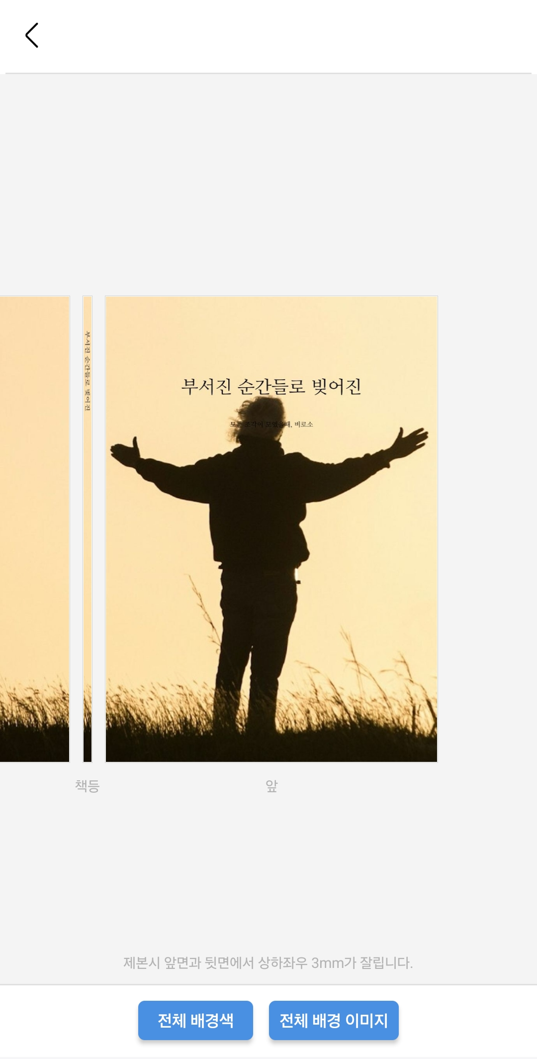 [전체 배경 이미지]를 선택하면 표지 전체에 들어갈 이미지를 첨부할 수 있어요.