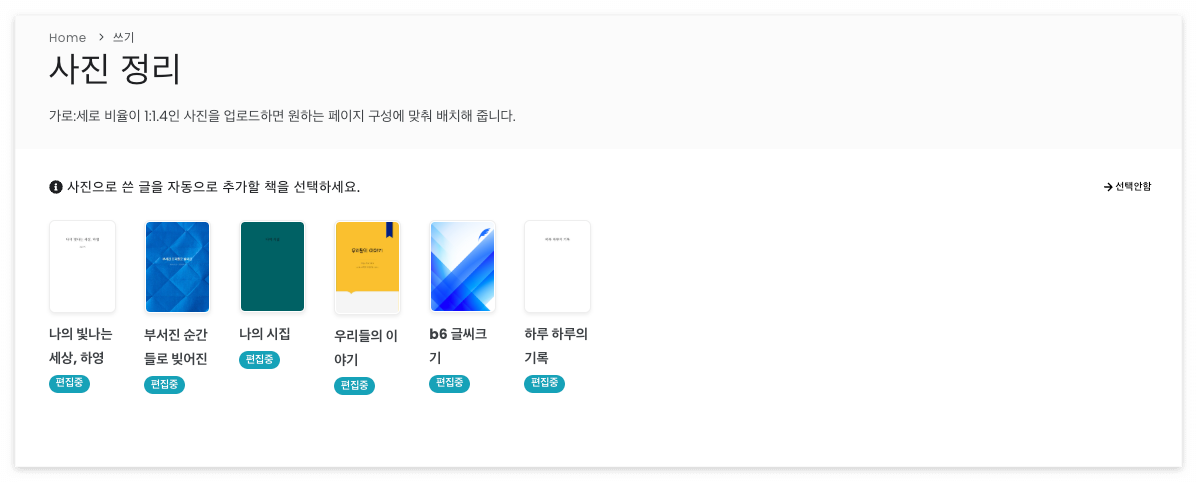 '사진 정리'에 들어가 책을 먼저 선택하면