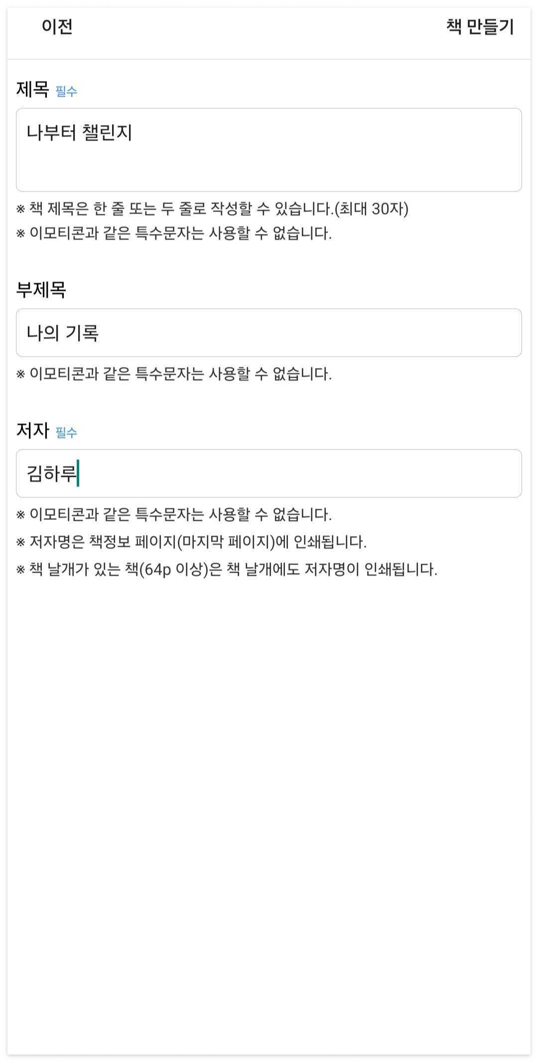 (더 많은 페이지의 책을 제작하고 싶을 경우, 책 제작시 추가 금액이 붙게 됩니다.)