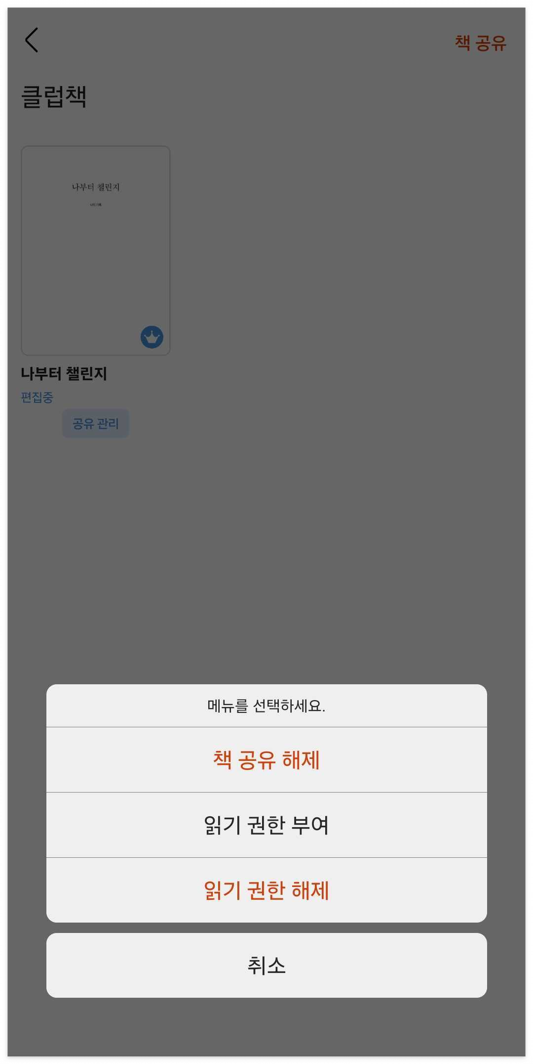 그러면 공유할 책이 뜨게 되는데,