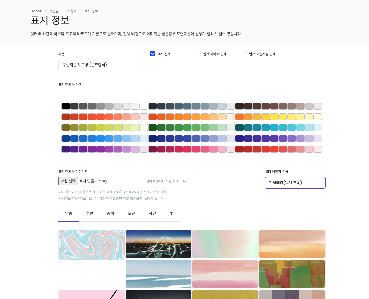 전체 배경 이미지를 넣기 위해 [표지 편집]을 들어갑니다.