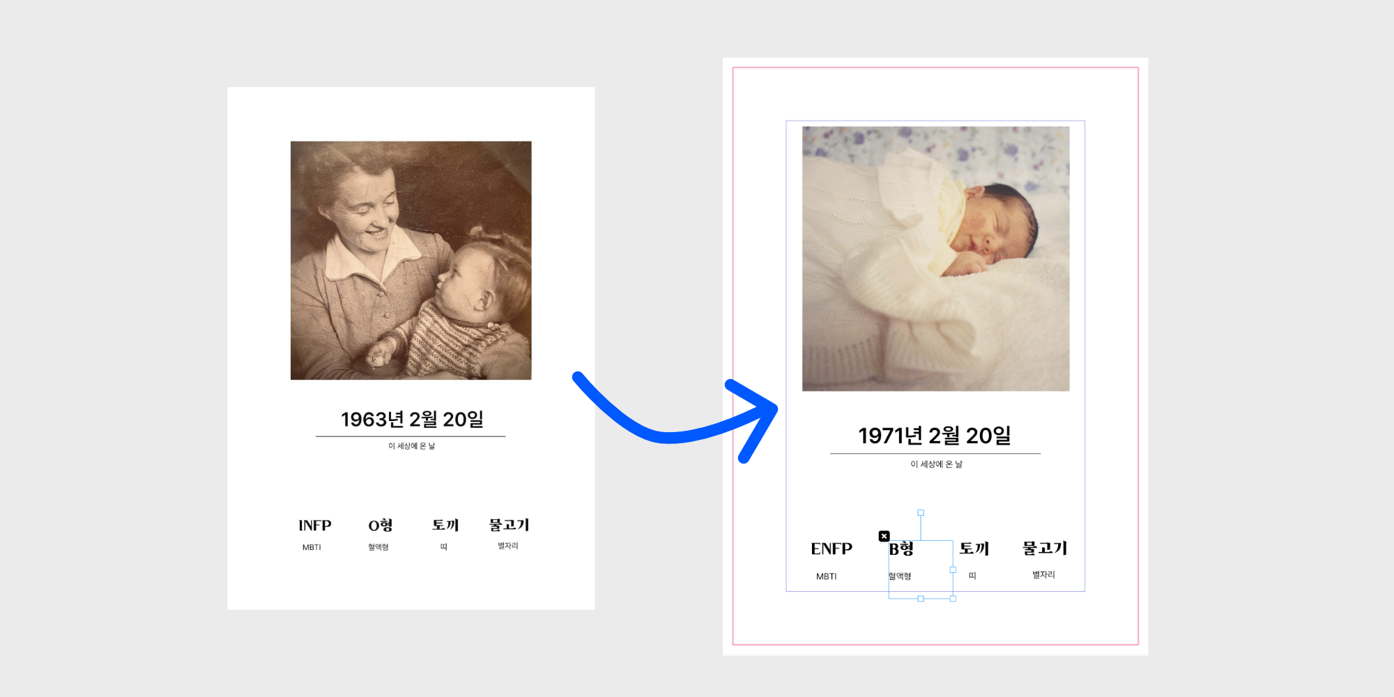 이미지는 선택하면 하단에 교체 메뉴가 뜨니 자신의 사진으로 변경해주시면 됩니다.