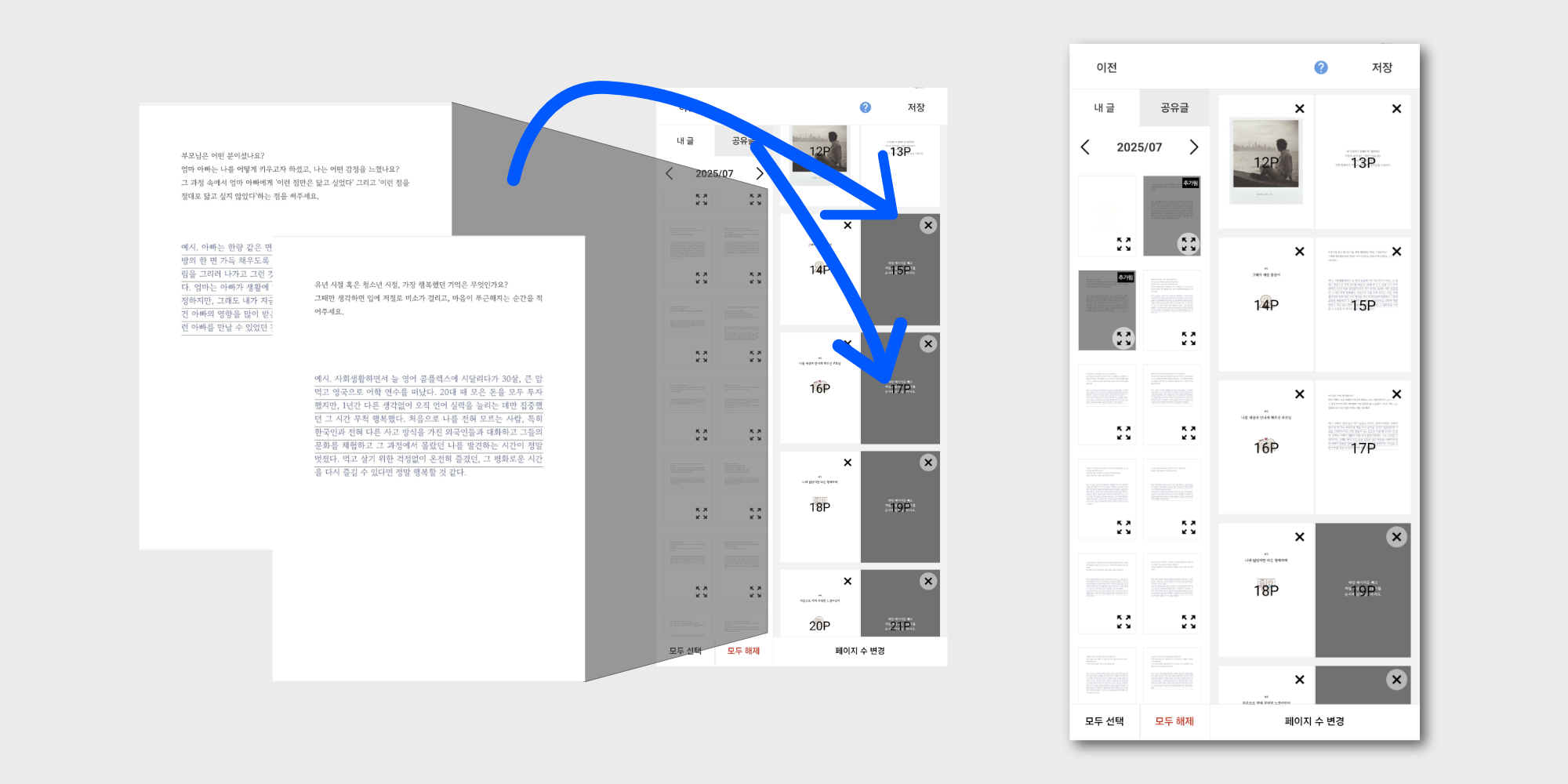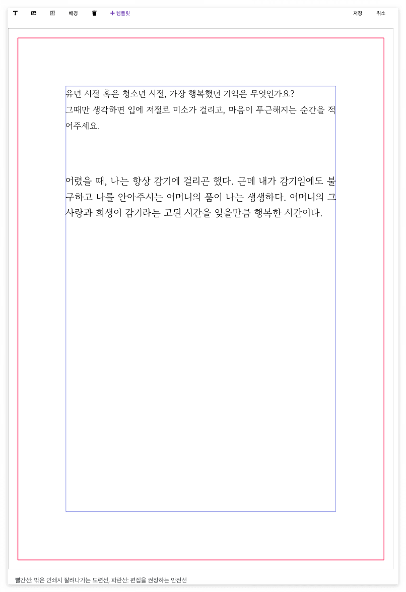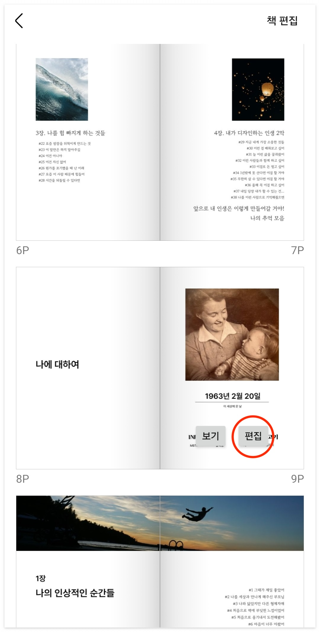 모든 페이지를 다 내 글로 채우면 [편집완료]할 수 있습니다.