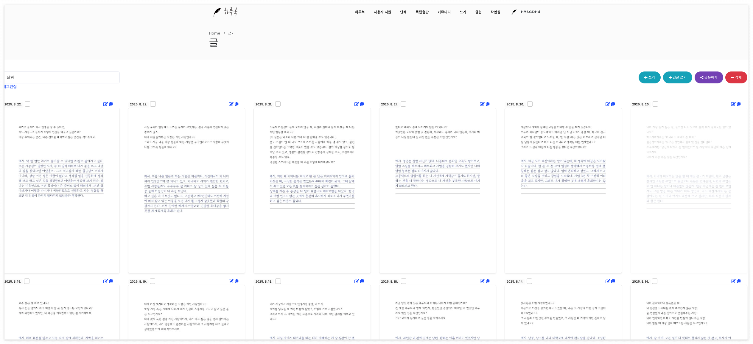 하루북에서는 이것을 하나의 '글'이라고 부릅니다.